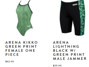 We have a one-piece race suit for the girls and jammers for the boys. There will also be limited sizing for upper division speedos.
